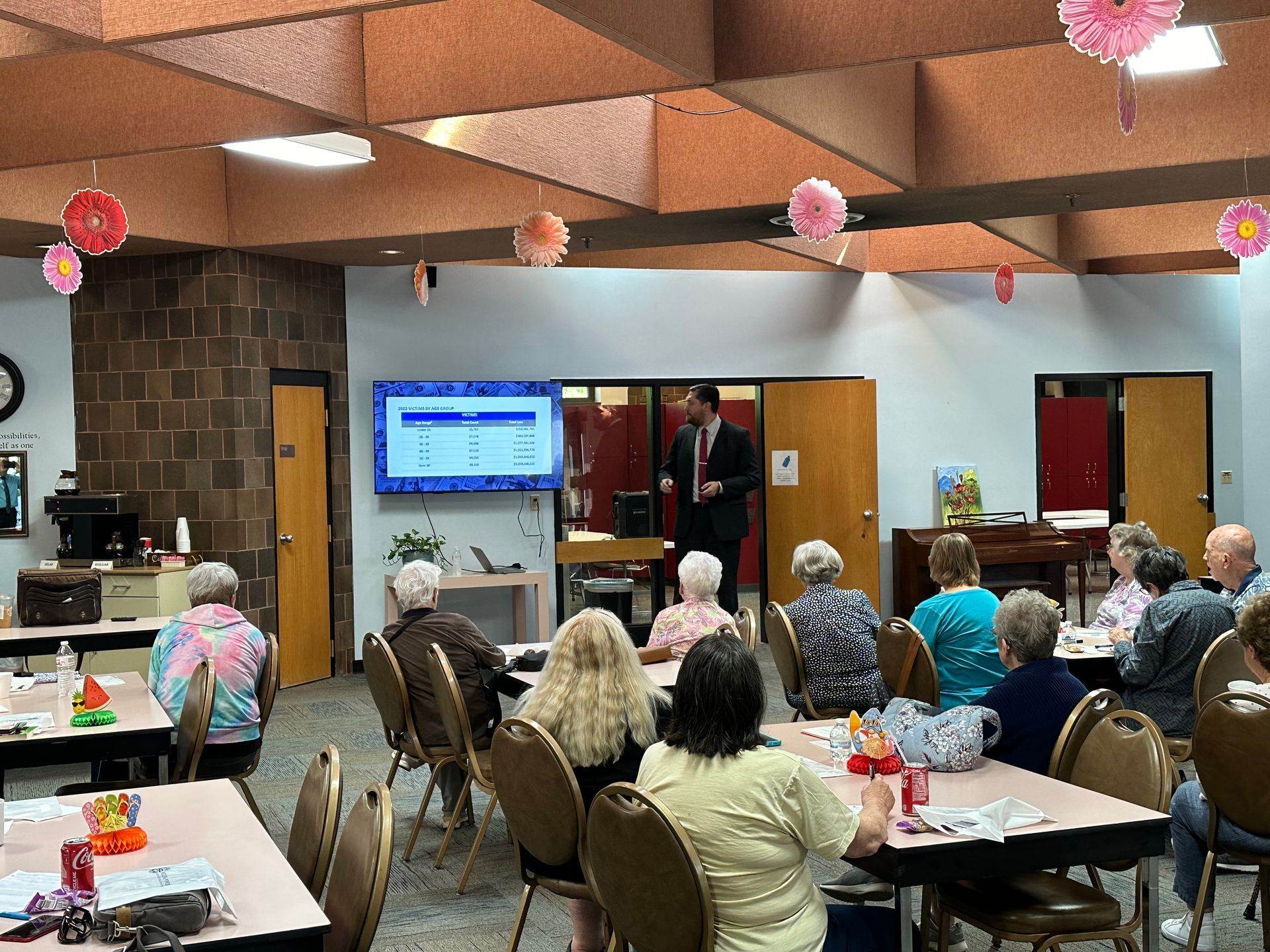 On Tuesday, August 13th, 2024, the team from the Elder Justice Unit hosted a training at the Miami Township Senior Center in Cleves. The event was one of over thirty hosted by the Prosecuting Attorney's office since August 2023. The presentation provided information on how to protect people from scams. Attendees also found out more about the office helpline, 513-946-SCAM.
